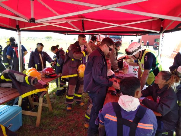 En el contingente de nuestra regional estaba también el bombero Nicolas Nasif a cargo de la operación del autobomba, el Cabo primero Ronaldo Fontana a cargo del chequeo de salud y el director de la escuela de capacitación de la Regional 2, Oficial principal Julio López, los 3 integrantes de nuestra institución. También tuvimos la colaboración en la carga de tubos de aire del bombero Walter Correa de bomberos voluntarios de Villa Ocampo.